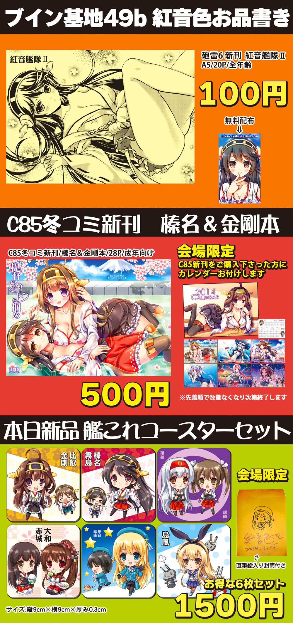 艦これコースターセットも少数頒布します、会場限定本も作れるように努力します。
